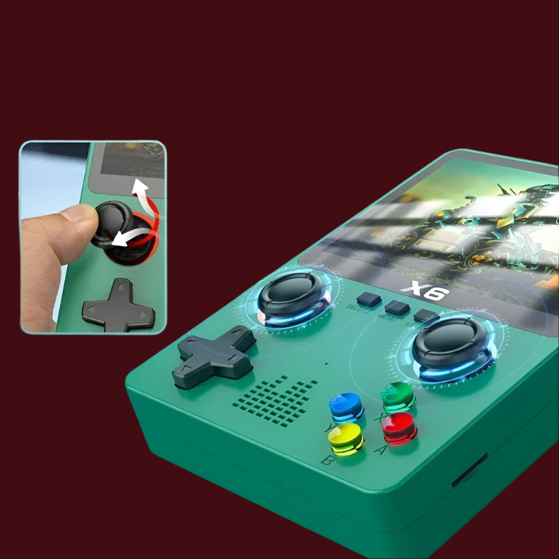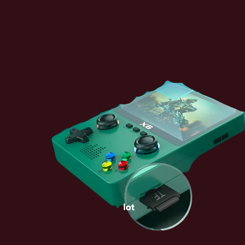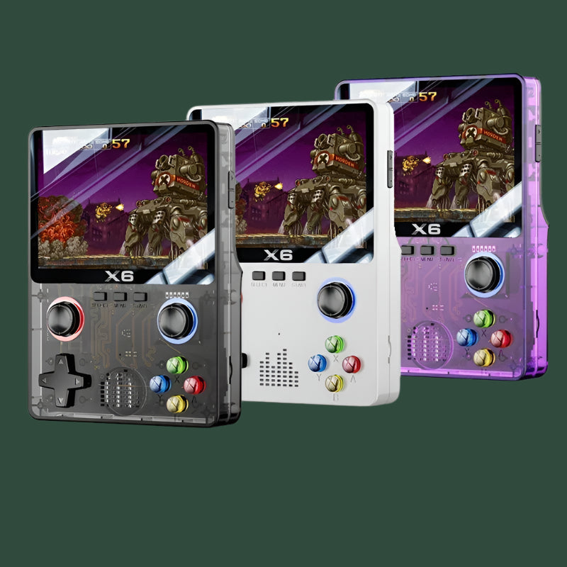 The X6 Handheld is a compact, portable gaming device designed for gamers who want to take their gaming on the go. With a sleek, ergonomic design and a vibrant screen, it offers an immersive experience in a handheld form factor. Equipped with powerful hardware, the X6 handles a wide range of games, from indie titles to older classics, with ease. It also supports both digital downloads and physical cartridges, giving gamers flexibility in their game library. With its solid battery life and lightweight build, the X6 is perfect for gaming on the move, offering convenience without sacrificing performance. Whether you're on a commute, traveling, or just relaxing at home, the X6 Handheld ensures a high-quality, portable gaming experience.